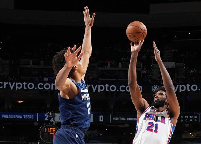 主帅尼克·纳斯将恩比德的复出首秀时间限制在20分钟以内。对待恩比德的复出,球队还是需要谨慎一些,避免恩比德再次受伤。恩比德对阵替补阵容作战的森林狼,打得游刃有余。他在比赛中充分展现了自己的各种技能,投进了两记三分球,篮下进攻也很有威慑力。他还送出了全场最高的8次助攻。