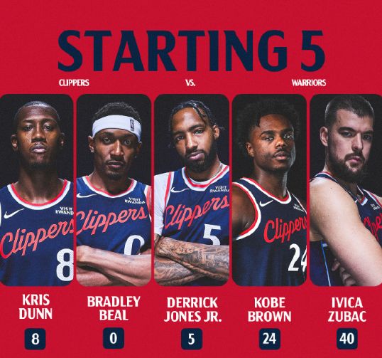 勇士本场缺少巴特勒、库明加、穆迪、梅尔顿、小库里,快船轮休哈登、莱昂纳德、保罗、大洛佩兹与巴图姆,比尔迎来加盟快船首秀。