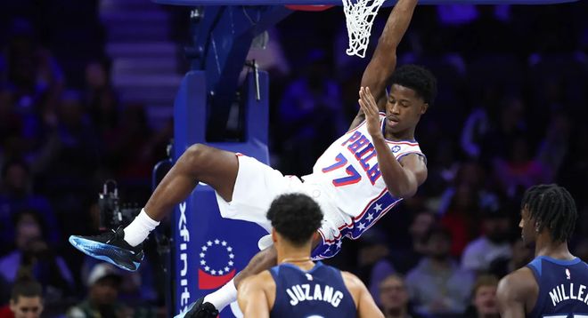 首秀狂轰34+7!历史第一!让球队老大打副手,76人探花上限有多高